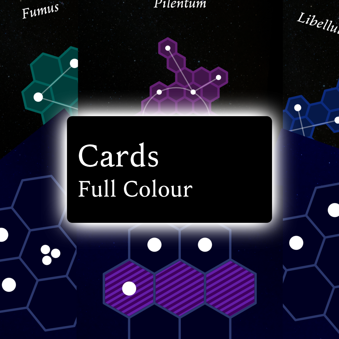 Codex Astronomica requires a set of 20 constellation cards and 30 star cards to play. You can find all print and play materials to make them here in both black and white and full colour versions.