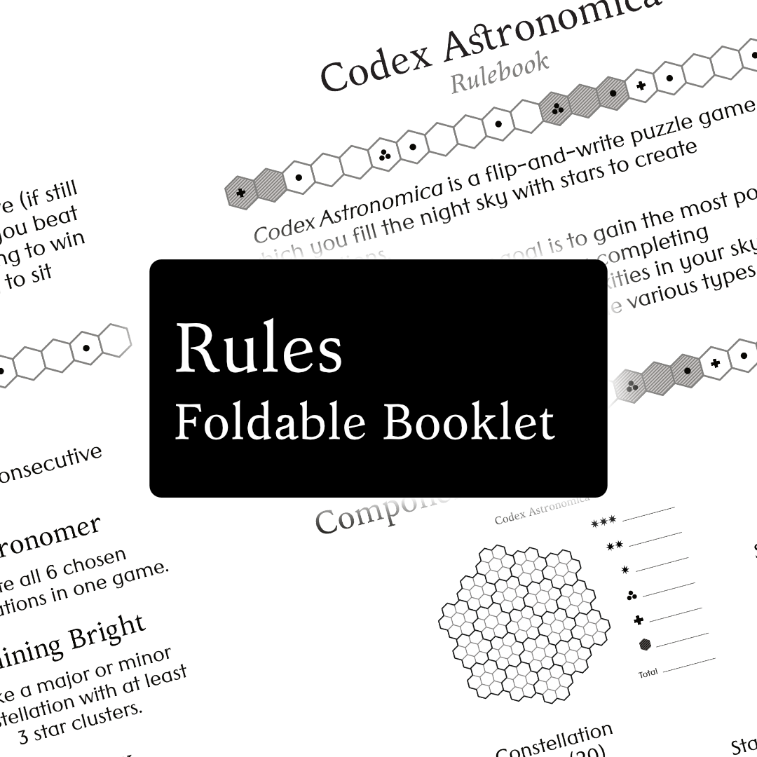 There are two versions of the Codex Astronomica rules found here: a standard version with the pages in order and a foldable double-sided page booklet variation if you wish to do a little bit of crafting.