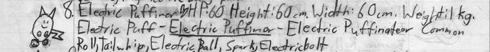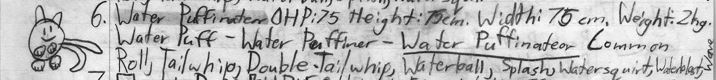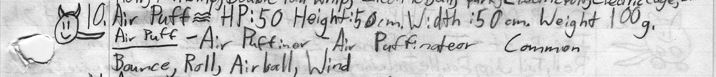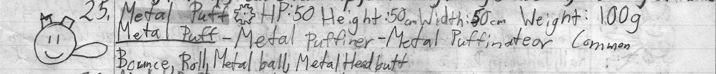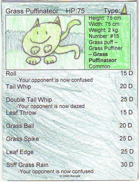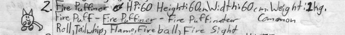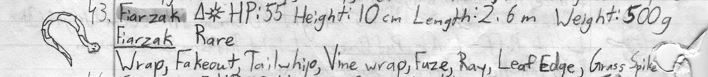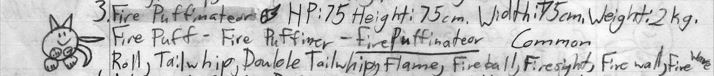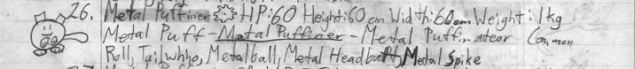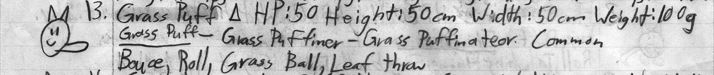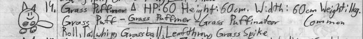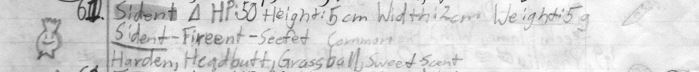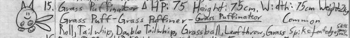 The list of attacks had no stats attached to it, just attack names. Of course, most attacks of any single type must start with the name of that type, otherwise who would know what type they are? 'Fuze' was specifically spelled that way, and apparently, 'Stiff Grass Rain' was a really cool idea. I did mention this stuff is a little embarrasing.