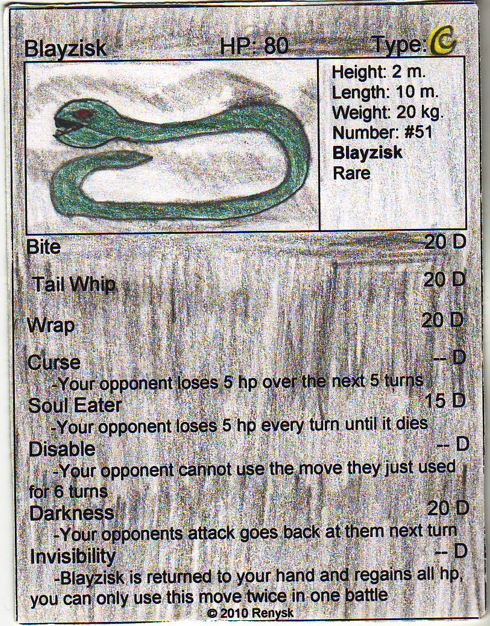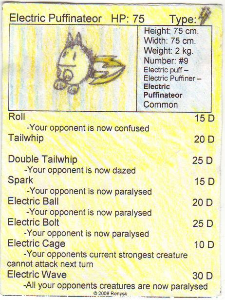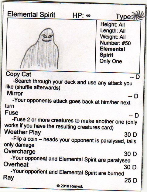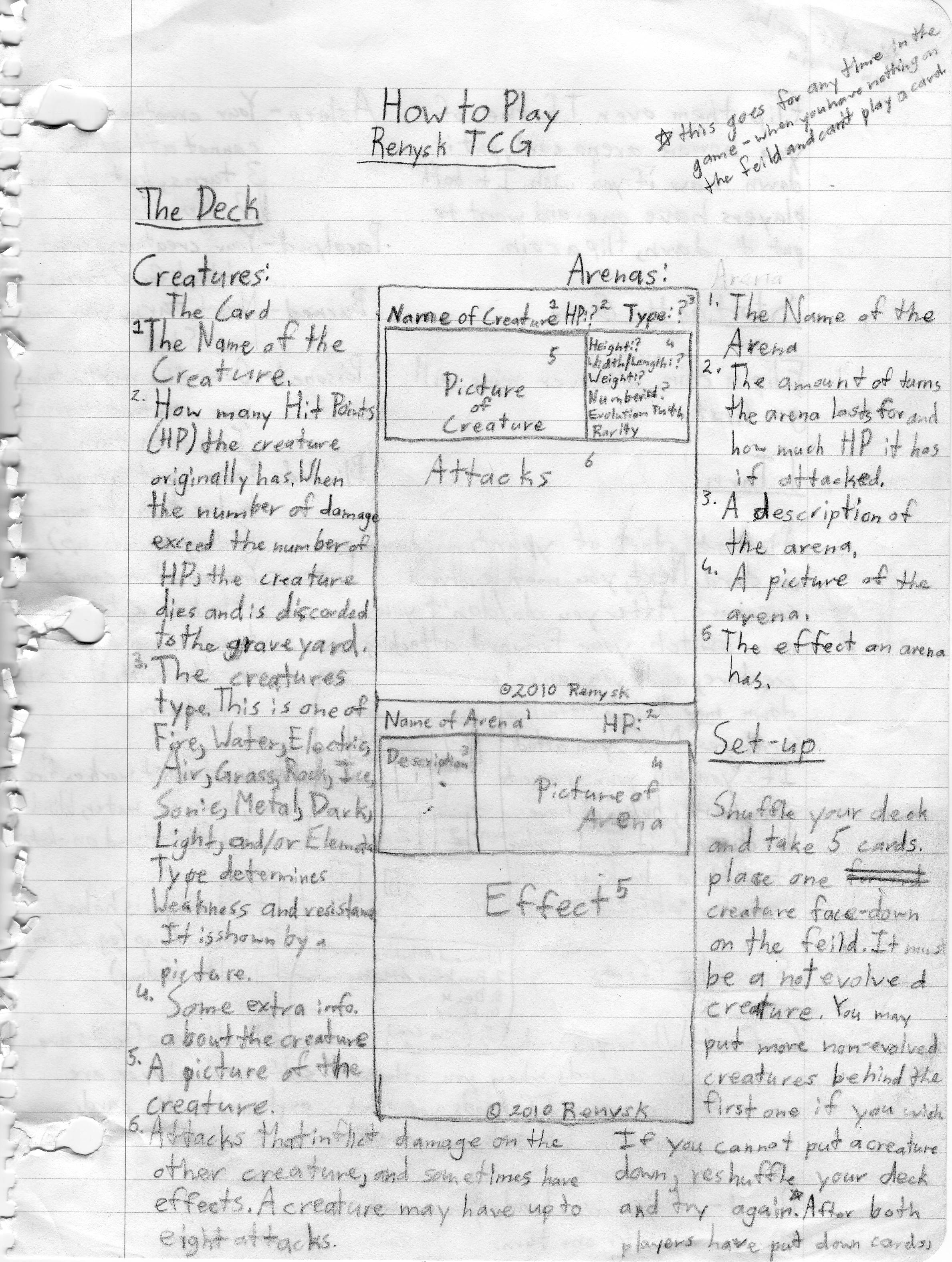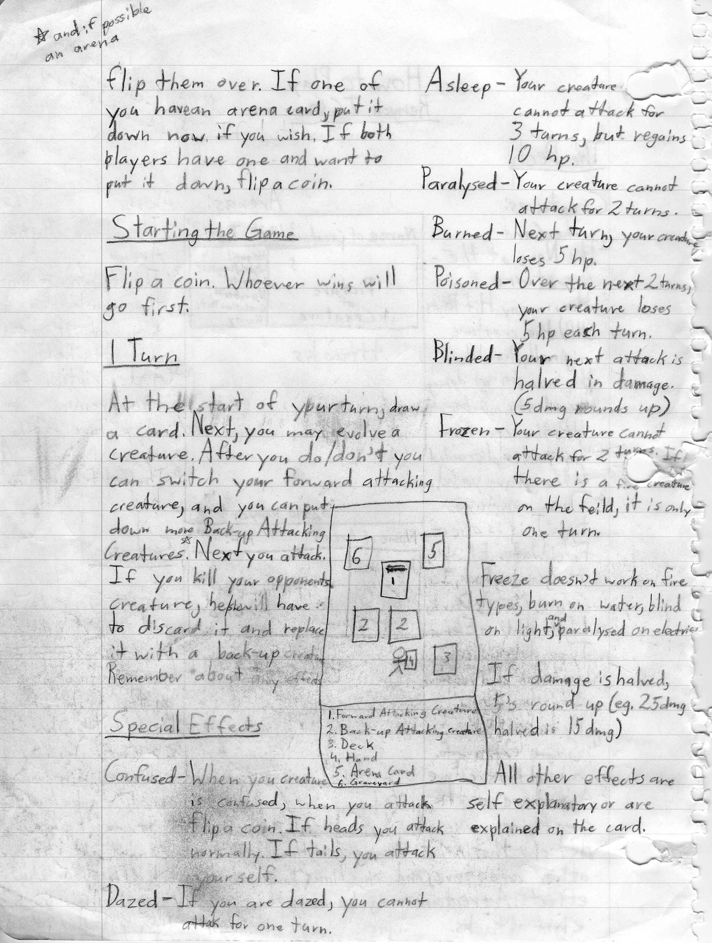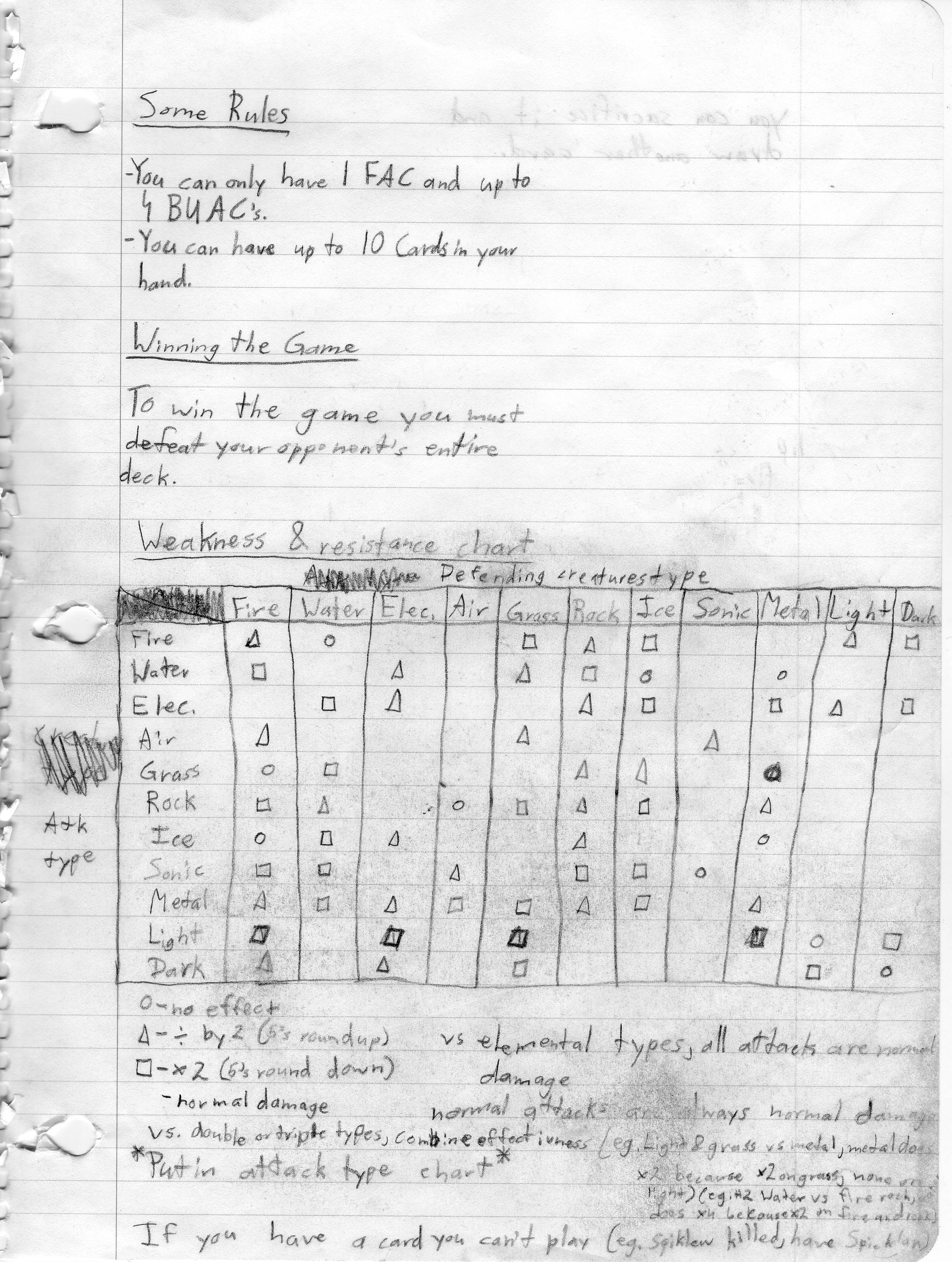 That's right, there was a whole three-page document on how to play Renysk TCG. Different things had to get rounded up or down but the rules might sometimes conflict, there was apparently a shared graveyard, and you were expected to memorize a massive weakness/resistance table and just apply it to any and all attacks - not to mention certain status (or rather special) effects not affecting certain types. Oh, and it's up to the players the memorize the type for all attacks. Simple, right?