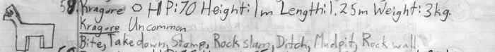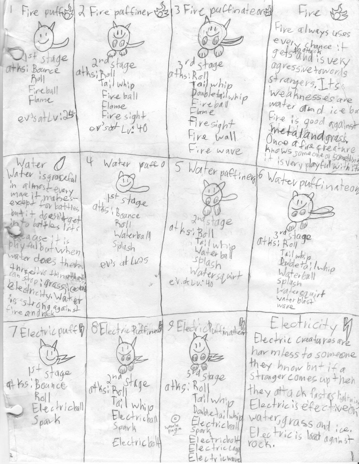 Looking back at some of the earliest worldbuilding I've ever done circa 2008-2010. It's a little embarrasing, but holds a special place in my heart so here it is. You'll note I was really into Pokémon at the time - making my own world naturally translated to making a bunch of creatures for it - complete with types, health, attacks, and evolution chains. The world inspired some of the basics (a.k.a. elemental areas) for Ancient Rift.