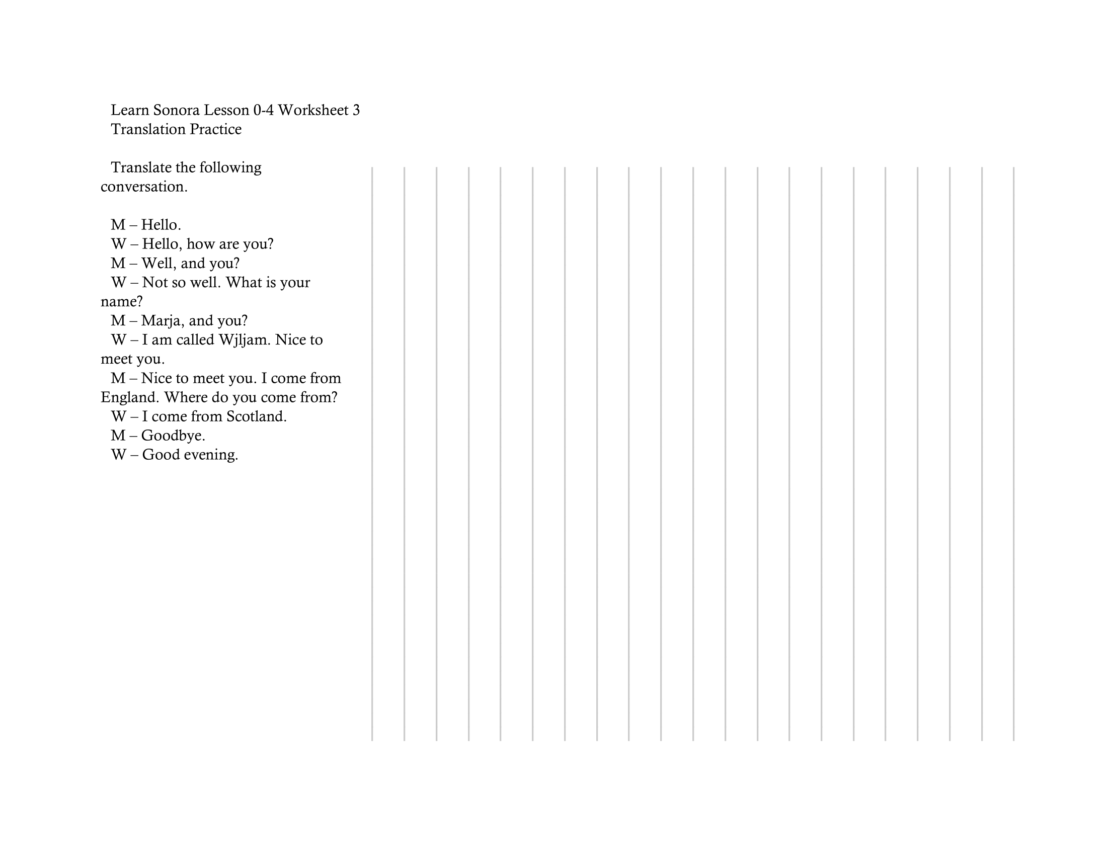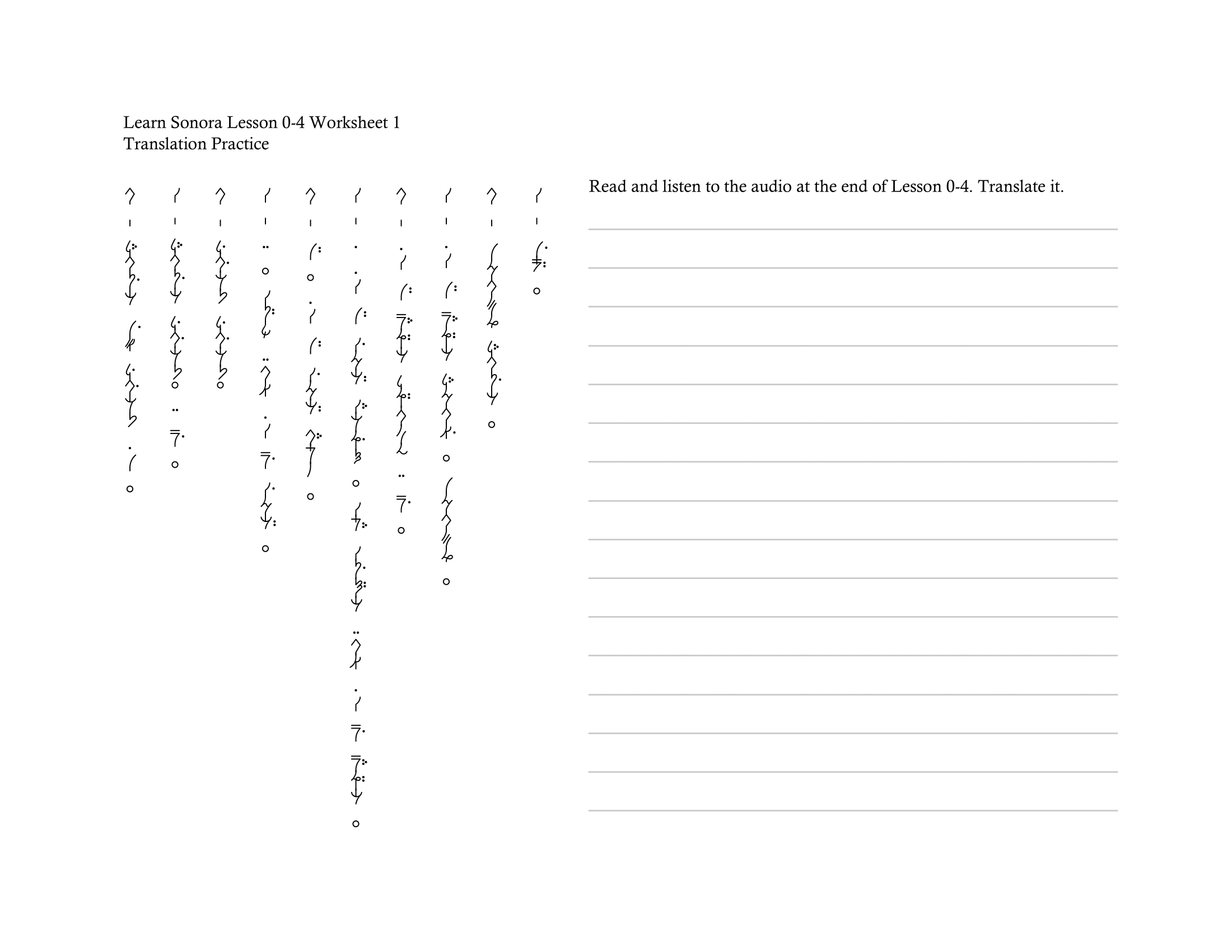 The rest of this lesson’s practice can be found in the following worksheets. Use the audio here to complete worksheet 1. Bonus practice: if you’re learning Sonora with a friend, have a small conversation between the two (or more) of you!